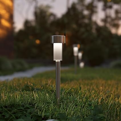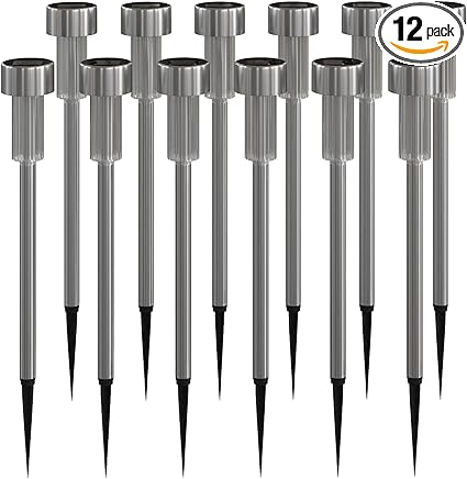 This package of a dozen outdoor lights adds some flair to my backyard. I tried to put them into the ground around my garden in early March, but the ground was still frozen and the sticks would not go far enough into the soil. By late March they were fine and I’m looking forward to seeing them light up every night as the sun goes down. They line the path around the garden very nicely and provide an attractive and uniformed lighting system with no wires or hassle.