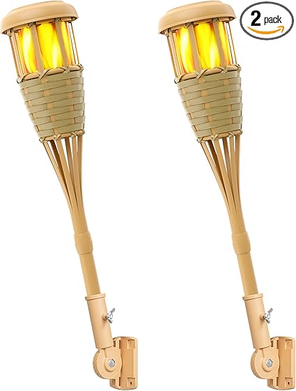 These realistic looking tiki torches look great and recharge with solar power in the daytime to provide flickering light at night.