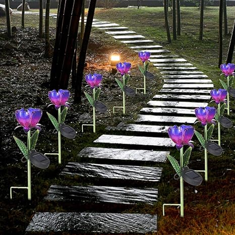 - ▲ Solar Decorative Garden Stake – High quality waterproof solar panel, when sunlight is enough, the warm white LED light will automatically turn on and can last 8 hours or more at night. It is easy to be seen and appreciated, but it will not bother the neighbors.