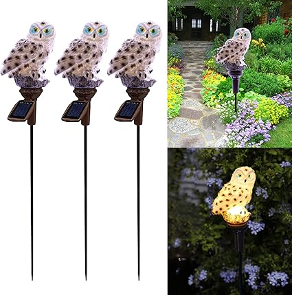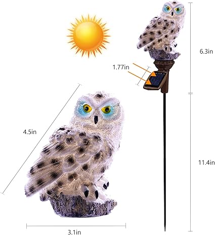- 🦉EASY TO INSTALL: Place the solar owl decorative lights on the plastic floor and insert it into the soft floor. Excellent decoration for gardens, terraces, backyards and lawns; the mini size is also the best gift for children and friends who like owls. Suitable for outdoor garden decor, this solar owl decoys to scare birds away, no need to worry about bad weather such as rain, snow and frost.