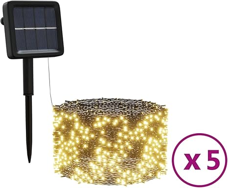 Gecheer 5 Pieces Solar Fairy Lights 5×200 LED Warm White Decor