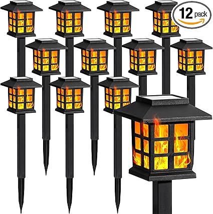 - 【ELEGANT OUTDOOR DECORATION】With attractive and modern design, these bright solar garden lights with flickering flame create an elegant outdoor lighting experience, perfect for your garden, yard, flower bed, terrace, walkway, driveway, or anywhere else.