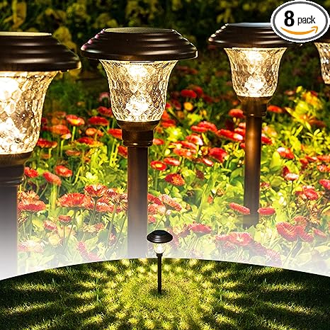 - 【EXCELLENT LIGHTING EFFECT】 Providing high lumens of 3500k warm white light, clear glass lampshades ensure no decrease in brightness, glass design projects sunflower-style light pattern, add a unique decorative charm to pathways, walkways, sidewalks, patio, yard, garden, and landscape
