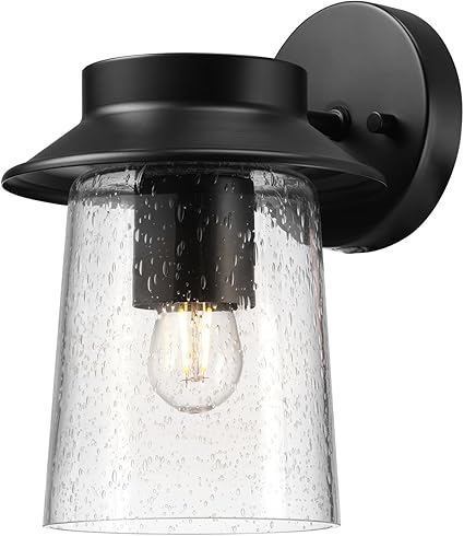 - FARMHOUSE DESIGN: with a matte black finish and seeded glass shade, this solar powered wall sconce has a classic farmhouse shape and can be paired with any existing décor