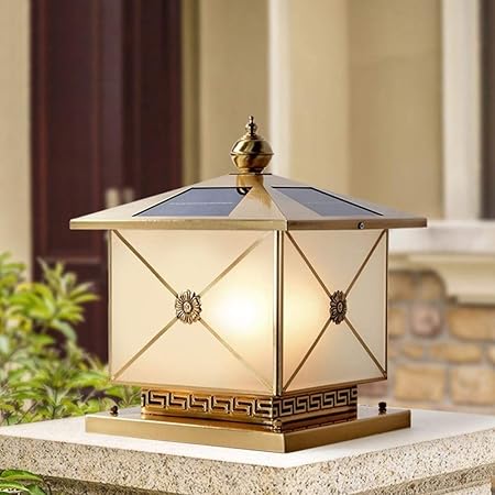 Gold Copper Solar Garden Lamp Post Light Waterproof Retro Design