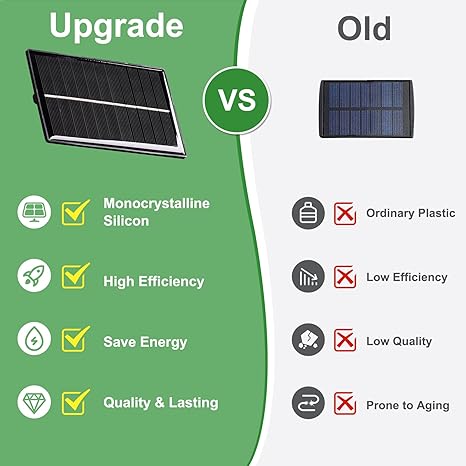 - 【Energy-Efficient】: Solar Motion Sensor Outdoor Lights utilize powerful Solar panels to efficiently absorb sunlight and power your lights at night