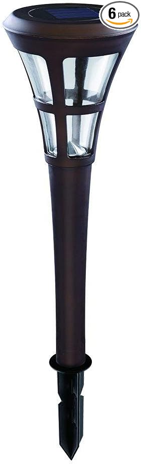 Illuminate your pathway with the Hampton Bay Mediterranean Bronze Solar Path Light 6-Pack. Brighten your outdoor space—shop now for warm ambiance!