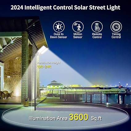 - Extremely Bright Solar Street Light: Solar street lights outdoor use 960 high-efficiency 5730 SMD lamp beads and with a long lifespan and low light decay, 360000 lumens and a color temperature of 6500K for extreme brightness. Its lighting range reach up to 3600 square feet.