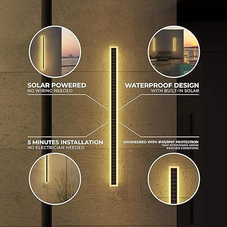 - LONG-LASTING & ECO-FRIENDLY LIGHTING: Enjoy years of maintenance-free operation with the Ozarke Immense Built-in Solar LED Outdoor Linear Wall Light Fixture. Its advanced solar technology and energy-efficient LED bulbs ensure long-lasting performance while reducing your carbon footprint. This modern long wall sconce not only enhances your outdoor spaces but also contributes to a sustainable lifestyle with its eco-friendly design.