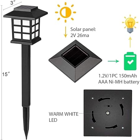 - Easy To Install: Turn on the switch under the cap and push the stake into the soil. These solar path lights automatically turn on at night and turn off at dawn!