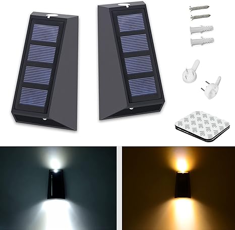- Energy-saving LED Solar wall Lights: During the day, the solar panel energized the battery(automatically charge) and powered the light at night.Equipped with professional low voltage warm white/ cool white LED .Life span can be 50000 hours.The battery lasts a good amount of time throughout the night if you have a full days sun.