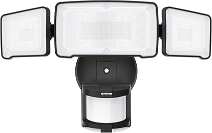 - 38 W Brightness and Energy Saving: The motion sensor outdoor light with output 38 W, 4200 Lumens, 5500 K brightness; With optical designed filter lens, it provides better illumination; Save more than 80% electricity bill compared with equivalent traditional lights 175 W