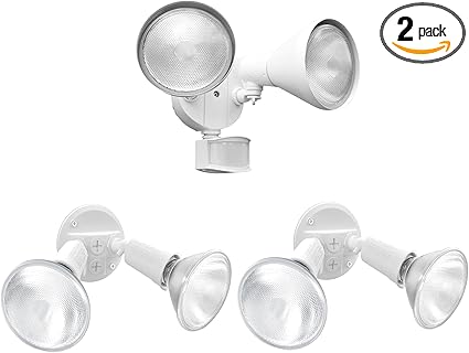 - 【ADJUSTABLE DUAL HEADS】Tool-free adjustable heads on the floodlight fixture offer rotation up/down 180° and side to side 360°, allowing for light to be focused in two directions. The twin par holder provides outdoor, residential, and light commercial areas with focused illumination, safety and security