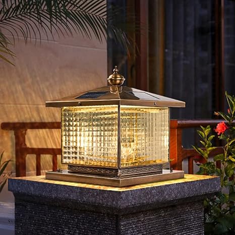 - MODERN OUTDOOR LANTERN: This outdoor floor lamp is made of thick copper, patterned transparent glass can create chic lighting effects. Ideal for your home, porch, garage, patio, yard, hallway and entryway.