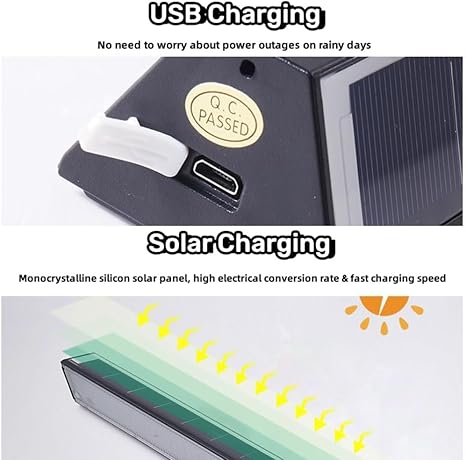 - USB & Solar Charging: Don’t worry! When you encounter emergency power needs or continuous rainy days, it also has USB charging way to meet your needs. Achieve a full charge in just 3H via USB or 8H through solar charging. Featuring IP65 waterproof, the fence solar light can withstand most kinds of weather.