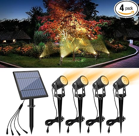 - 【Weather resistance】Cast aluminum textured black finish spotlight fixture, it has excellent stability and durability. IP65 Waterproof,outdoor solar lights for yard can withstand rainy and snowy days ect