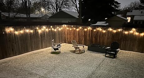 The solar string lights over the fence with 29 Ft is a wonderful outdoor decor item providing enough lights for continuous 8 hours overnight; till 4am. I got 2 of those ordered and its been more than a year, working with only couple of bulb out, with the extra replacement bulbs included. This is a perfect solar powered light for my backyard and is waterproof with high solar panel function, 25 shatterproof bulbs and 3 light modes.