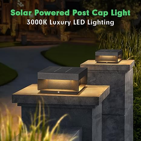 - High Quality Solar Post Light: Crafted from Thickened Die-cast Aluminum and finished with firm waterproof coating, solar cap light for pillar with durable acrylic is not succumbing to harsh outdoor environments and will not rust easily, highly recommended by landscape architect. Its shiny grey spray treatment and sleek design adds a touch of modernity