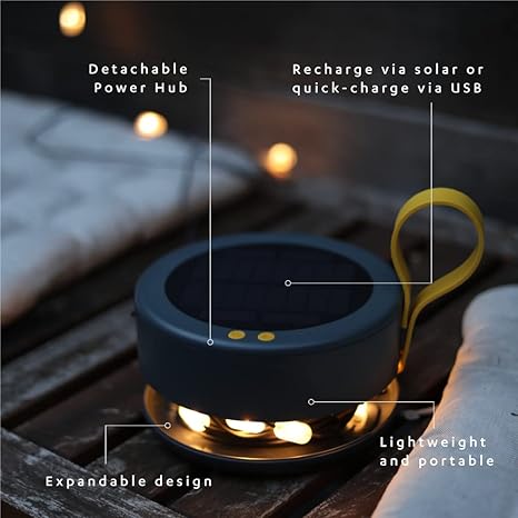 - 44 FT SOLAR STRING LIGHT – 44 ft nylon-braided cord in expandable unit