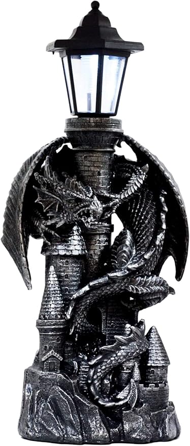 - This Castle Dragon Solar lamp statue is made of designer composite resin, hand painted and polished.