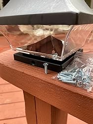 I built a 16′ bridge with 4 posts on each side for the railing support. I wanted 8 postcaps but decided on these instead. The postcap lights were easy to install and look good, but they are very fragile. Maybe anything will be fragile. I don’t get a lot of sunlight in the summer, so they don’t illuminate for very long. When they do, the ambiance is great and you can see the bridge walkway. Hopefully, when the leaves fall the solar panels will get enough light to fully charge the batteries, if something doesn’t knock them off beforehand. They fit perfectly on a 4×4 post, and have screws to hold them in place. It’s easy to attach the lights to the baseplate. There’s an LED bulb in the base that shines upward to a curved reflector that spreads the light downward.