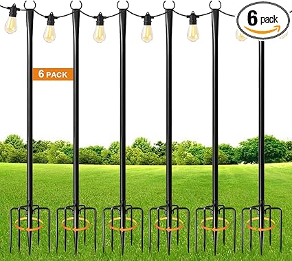 - 【Sturdy and Durable】String light poles are meticulously crafted from high-quality metal materials and equipped with a sturdy five-prong base,effectively preventing bending,breaking,or swaying caused by strong winds, demonstrating excellent wind resistance.At the same time,the surface of the light hanging pole is treated with a black glossy coating,which not only effectively prevents rusting but also extends the product’s lifespan.They can withstand the test of harsh weather,providing long-lasting and stable performance,making them very suitable for outdoor use