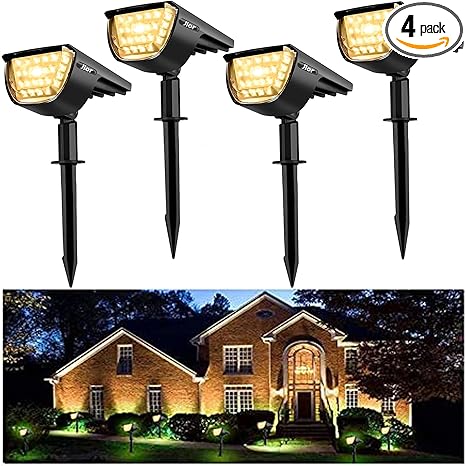- 2 in 1 Function&Multiple Uses:With specially designed ground stake and wall bracket, you can easily insert it into the ground as landscape light or fix it on the wall as wall light. no wiring needed.Solar lights outdoor will light up your patio, porch, deck, pool, yard, backyard,garden, garage, driveway, pathway, etc.The 32 LED solar landscape spotlights set is brighter than the ordinary outdoor spotlights on the market,thus maintaining longer lighting distances.