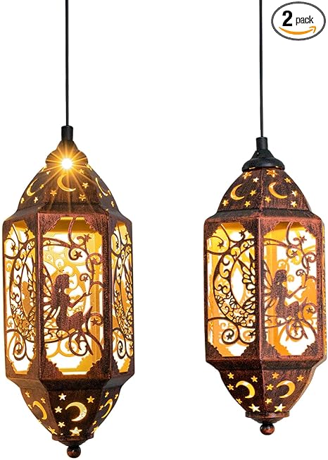 - Multi-Functional Fairy Lantern: With lovely moon fairy design, magical soft yellow glow and lucky moon star pattern, the solar powered lanterns is a nice gift for kids and adults and super cute patio, backyard, front porch, garden decorations