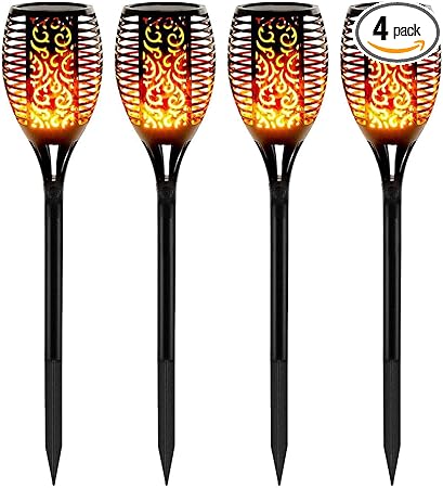 - WEATHER RESISTANCE: Solar outdoor lights waterproof withstand all kinds of weather, enjoy durable flickering flame torch light all-round the year without being worried about the weather