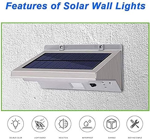 - [3 Mode Motion Sensor Solar Security Light] – This solar wall lights features 3 convenience modes to choose, ① motion sensor strong light& dim light mode ② motion sensor mode (strong light & Lights off ) ③ always on mode (dim light) to accord with different lighting needs in energy-saving way.