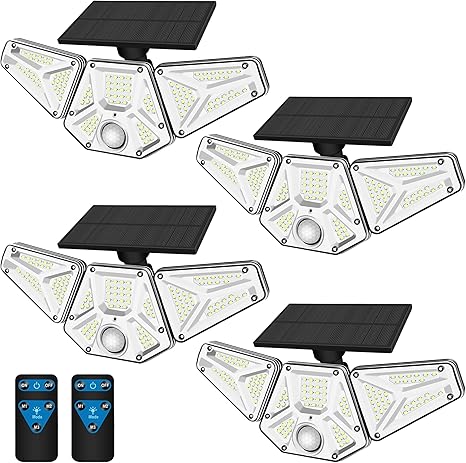 These solar floodlights are perfect for our backyard in Florida. The remote control is a big plus, allowing me to easily switch between the three lighting modes: strong light, low light, and sensor mode. The adjustable heads let me direct the light exactly where I need it, so it doesn’t shine over the fence or disturb my neighbors.
