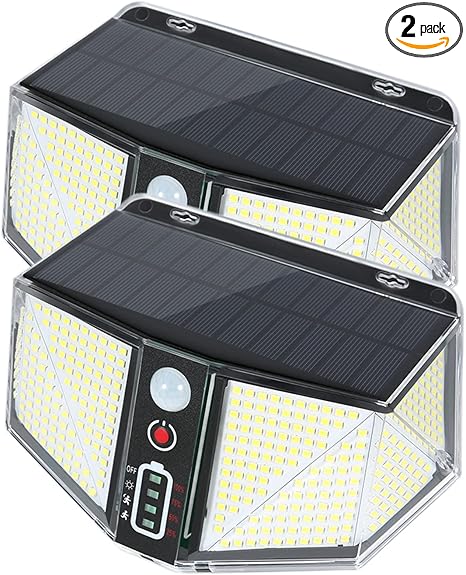 - Ultra-bright lighting: The newly upgraded solar lamp is equipped with 410 LED lamp beads, 2800 lumens, 100% more than other solar lamp beads, 200% brighter, 6 lighting surfaces, 270-degree wide-angle lighting, lighting range up to 300 square feet。