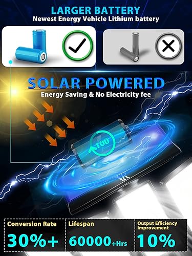 - 【Efficient Heat Dissipation & Ultra Long Battery Life】The solar flood lights outdoor with High-strength ABS provides a higher heat dissipation efficiency. Waterproof IP65, designed for extreme weather. 2400mAh large battery capacity, intelligent light control sensor chip, and solar panels up to 50% conversion rate make its lifespan reach 50,000+ hours