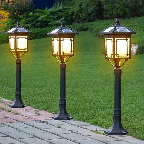 - Wide Application — The solar bollard light uses 3000K warm lighting. You can use the vintage garden landscape lights anywhere, such as decorating the garden, backyard, lawn, party, balcony and so on.