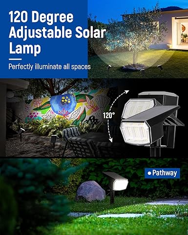 - 【2 In 1 Function & Easy Installation】:These outdoor solar lights can function as a landscape light or wall light. Set up is fast and easy within 10s. Note: Cover the solar panel and turn on the light to test the product before placing out