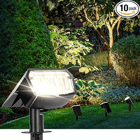 - 【High Brighteness Solar Lights】: AUDERWIN Solar spotlight equipped 63 high power LEDs, emit 4000k daylight with super bright light. Perfect for patio, front door,backyard, garden, driveway, walkway,tree, fence, house illumination