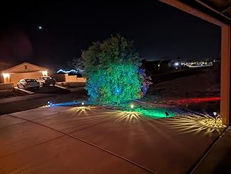 I added these to a hill that I didn’t feel like wiring for low voltage landscape lights. So far, so good, and these lights are plenty bright. I set [most of] them to the middle brightness setting, but I’ll probably either lower the setting, or point them straighter up so they are not quite so bright on the tree trunks.