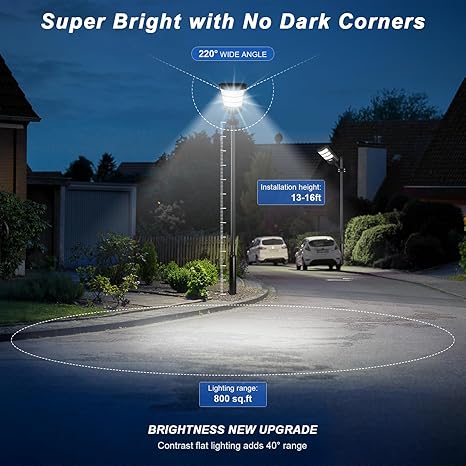 - 【Super Bright and Wide Lighting Range】 YACAISI 10000LM solar street outside light features high-efficiency 216 PCS SMD 5730 LED beads, delivering incredibly bright illumination. With an ultra-wide-angle lighting design spanning 270 degrees, it provides a wider range of lighting and brighter illumination compared to ordinary street lights