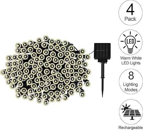 - 4-PACK OUTDOOR STRING LIGHTS – The solar outdoor lights are a unique, yet practical accent that adds a decorative glow to your outdoor space. With 4 strands, they are perfect for the patio, garden, deck, porch or even events like parties or weddings.