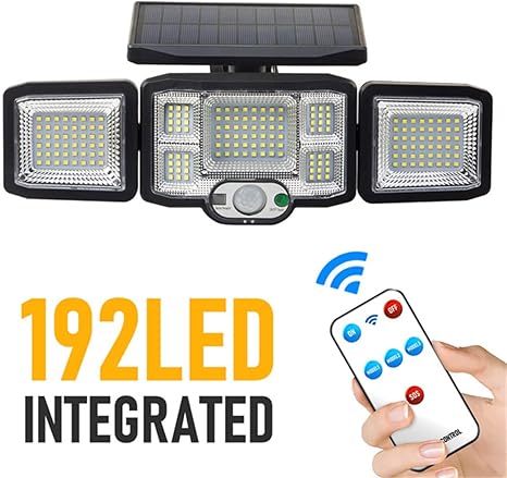 - [ Bright 192 LEDs]Equipped with 192 LED beads, our solar outdoor light can provide 1800LM bright lighting. 3 headlights with rotatable design illuminate a wide angle of up to 270°. Waterproof IP65, heat resistant, all weather