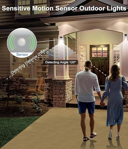 - Ultra Long Range Motion Sensor Lighting: The Motion Sensor Solar Fence Lights are small and unobtrusive, but they perform well. With a 20ft/6m motion sensing distance, it can accurately sense movement in the surrounding area, and at the same time, the illumination angle can reach up to 120 degrees, realizing a large range of illumination.
