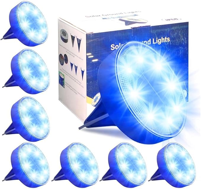 Illuminate your outdoor space with our Waterproof Solar Lights! Get 4 solar lights and 8 blue disk lights today for a vibrant, eco-friendly glow!