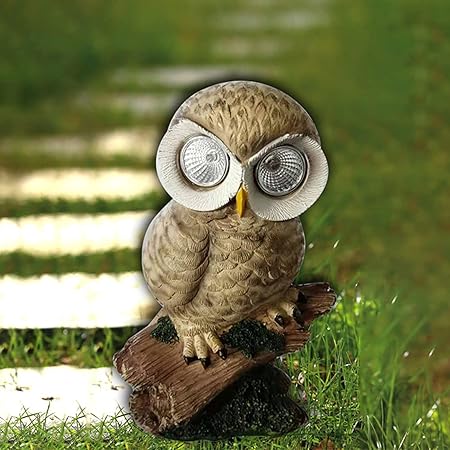 - AUTO ON/OFF: This solar owl garden ornaments has a light sensor, it will switch on and off automatically. The lighting automatically turn on in dark environment, and automatically turn off in bright environment. These attractive owl garden statues will bring you unlimited fun for your gardening time.