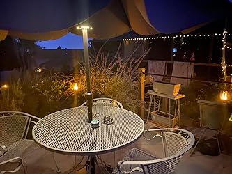 While this is a really great idea and addition to a patio table, providing light for the whole table, the springs that hold it to the umbrella pole broke within 4 weeks of it arriving. There is no way of returning it either, so get ready to buy something that will break right after it can be rectified by the seller!