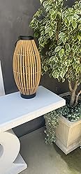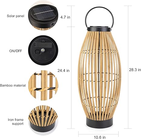 pearlstar Solar Floor Lamp Outdoor Decorations for Patio 24″ Large Natural Wicker Rattan Solar Powered Lantern Outdoor Lighting Waterproof for Garden Yard Lawn Deck Pool Porch Driveway Pathway