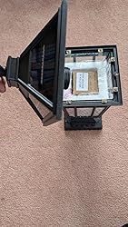 Great looking, and a well-built lamp for the yard. The base is so sturdy, it can safely be used in windy conditions too. The size of a good, well-lit bright, made for all seasons in the yard. The added remote give you functions like more or less light. Rustproof, shockproof with baffles that allow rainwater to flow off. Only took a minute or two to install this lamp get it running. Simple installation, without instructions.