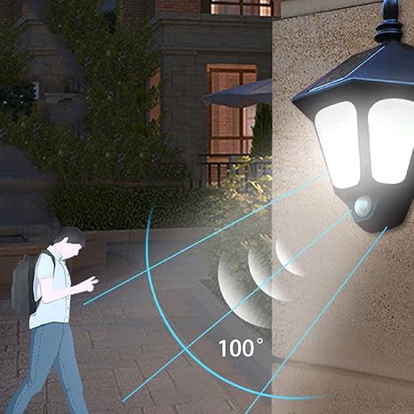 - 2. ACCURATE MOTION SENSOR: With the built-in sensitive motion sensor, the solar light integrates the motion detection, light sensor and infrared sensor as a whole, and has a detection range of up to 3-6m and a detection angle of 100 °, easier for motion detection than other outdoor solar lights . to illuminate your way home for you and your family at night.