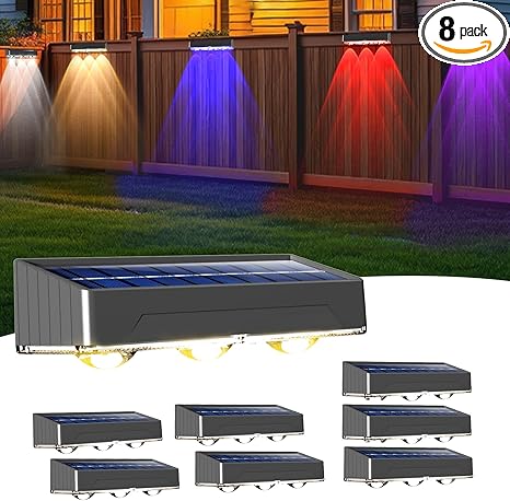 - 【Wide Range Of Lighting】 The size of fence lighting is 5.91 x 1.92 x 1.37in, choose the set of 2, 4, 8, 12 packs according to your demand. Tip: The on/off button and light color button are controlled by one button, press to turn on the fence solar light, then switch a color with each additional press. Solar lights for fence reach up to 9.84 feet of light beam, 150 degrees of illumination range.