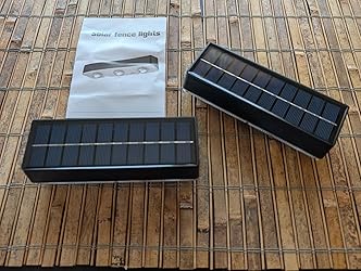 This is a review for the GEYUEYA Home RGB Solar Fence Lights, 2-Pack, 10 Colors Outdoor Lighting Set, 2 Modes Solar Powered LED Lights. These work well. Seem like better quality than one of the other sets I ordered. These are the 2nd and 5th lights in the picture showing 6 lights. I like the 3 bulbs in each light the best; I ordered sets with 3 bulbs, 2 bulbs, and 1 bulb each of different brands to compare. These come with a template that shows the distance between the screws; this makes it easy to see how far apart to install the screws. This made it easy to install the lights. Good brightness level. I am happy with the light from these.