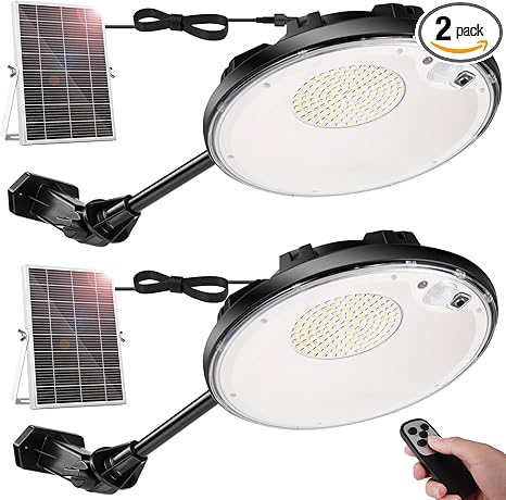 Ropelux 3500LM Solar Barn Lights with Motion Sensor Remote 2Pack